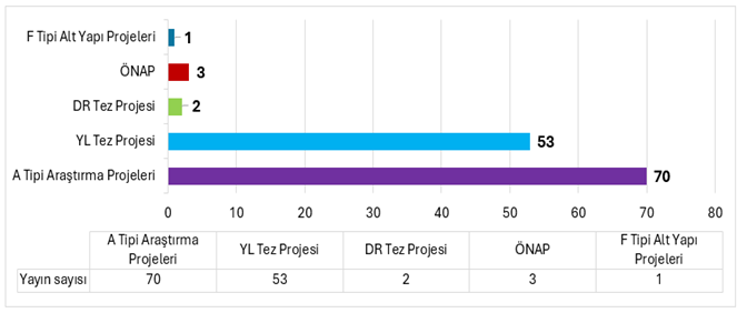 Projelerden üretilen yayınlar (2019-2025) (Toplam Yayın Sayısı: 129)